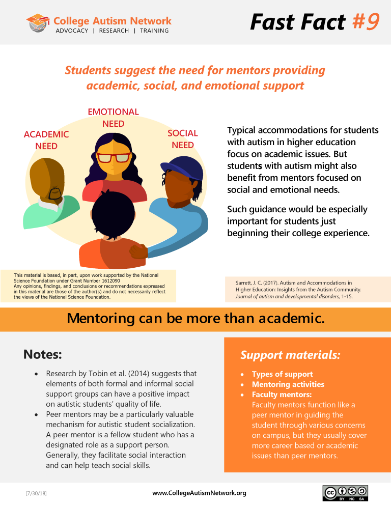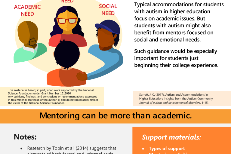 Mentoring can be more than academic. Typical accommodations for students with autism in higher education focus on academic issues. But…