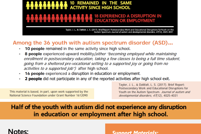 Half of the youth with autism did not experience any disruption in education or employment after high school. Out of…